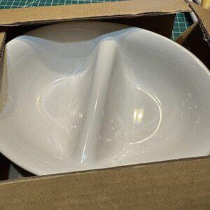 • Divided into two compartments for organized serving
