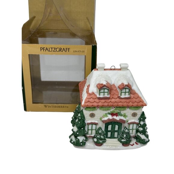 Christmas ornament, ceramic house decor, holiday collectible, snowy house ornament, festive decor, boxed ornament, 2001 ornament, Christmas decoration, Pfaltzgraff house, winterberry series, vintage Christmas, Pfaltzgraff Winterberry, holiday house figurine