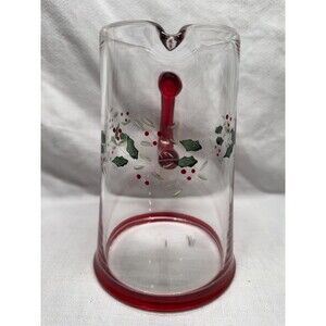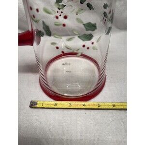 The Pfaltzgraff Winterberry Pitcher is a festive and elegant holiday piece made of red and clear etched glass with a holly design. This 8.75" tall pitcher is hand-painted and features a glossy finish, adding a touch of contemporary style to any Christmas or holiday table setting. Hand washed only, this original Pfaltzgraff piece is sure to bring a touch of holiday cheer to any home during the winter season.