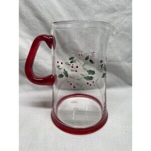 Pfaltzgraff Winterberry Pitcher red & clear etched glass holly holiday 8.75”