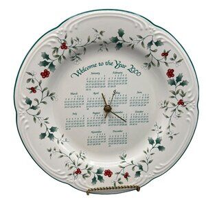 Pfaltzgraff Winterberry Calendar Plate Clock with Welcome to the Year 2000 on face and Taking You Into the New Millennium on back.