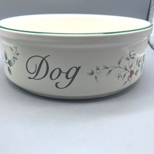 Pfaltzgraff Winterberry Rare Dog Bowl USA holly branches with berries,