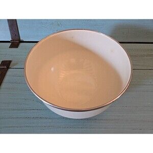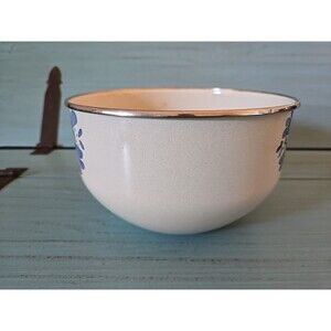 The Pfaltzgraff YORKTOWNE Enamel Bowl on Metal is a vintage piece from 1997, featuring a classic Yorktowne pattern in cream with blue accents. This round bowl is made of enamel on steel metal, measuring 7.25 inches in diameter and 3 inches in depth. Perfect for all occasions, this decorative and break-resistant bowl is a charming addition to any table setting, with a timeless flower theme that adds a touch of elegance to your dining experience.