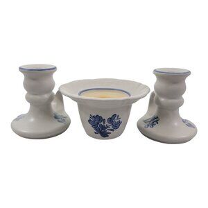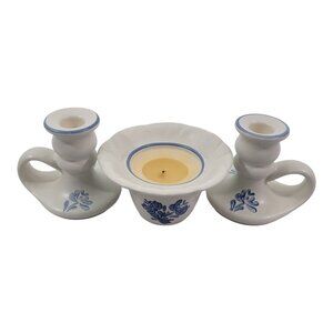 Pfaltzgraff Yorktowne 3 Piece Stoneware Candle Sticks & Candle Pillar Holder
