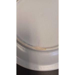 There is a very small chip on the underneath bottom ring of the bowl almost unseeable in piture but can felt. The Dinner Plate has a larger chip on the bottom rim shown in photos, but sits perfectly.