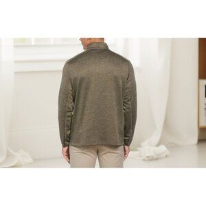 Two-toned space dyed fabric adds a fresh, modern look to this warm quarter-zipper golf sweater from PGA TOUR. Designed to keep you comfortable as you play through long rounds or simply run everyday errands, this lightweight pullover is crafted from warm and soft fleece and features Thermaflux. Stretch shoulder seams help to provide the freedom of motion you need to make each swing with your optimal form, while sun protection helps to block damaging UV rays from passing through the material. Contrasting solid-colored panels and a high mock collar add sleek, athletic finishing touches to the look.