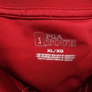 Pga Tour Polo Shirt Mens Size XL Red Geometric Print Short Sleeve 100% Polyester.