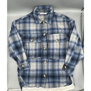 NWOT Pharaoh Laurel Plaid Blue Flannel Top By Pharaoh Collection Sz 0 MSRP $365