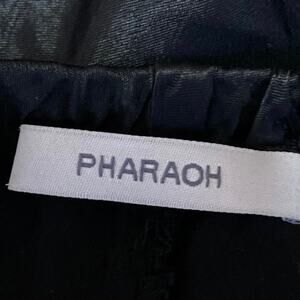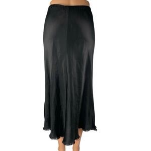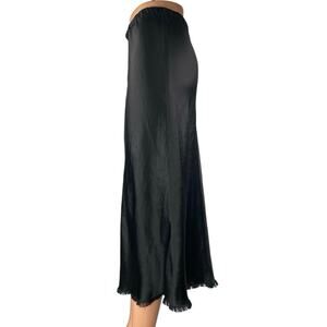Pharaoh Riley Black Silky Satin Fringe Elastic Waist Pull On Midi A-Line Skirt 1