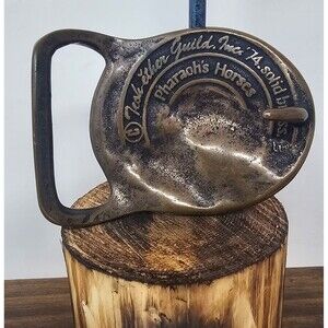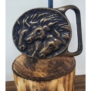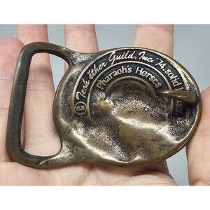 Pharaoh's Horses Vintage 1974 Solid Brass Belt Buckle by Tech Ether Guild 3"x2"