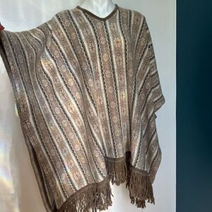 Lambs wool blend, warm and thick poncho, tassel detail on hem.