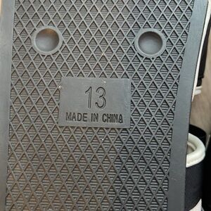 New, only tried on. Has a sharpie mark on the bottom of the left shoe. Please see photo. No box.