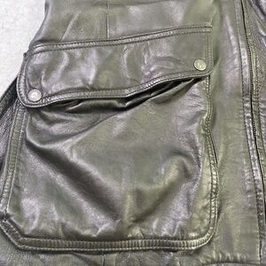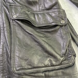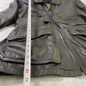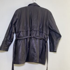 Phase 2 Jacket Mens Large Black Lined Heavy Leather Coat Vintage Long Belted