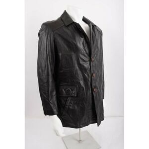 Phase 2 Mens Genuine Leather Trench Coat Jacket Sz M Medium Button Front