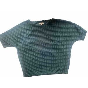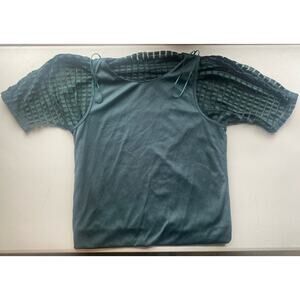 Blouse is texturized with square detailing and cut out shoulders. It's short sleeve and lined underneath. Sleeves are not lined you can see thru them.