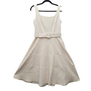 Phase Eight Dress Womens Size 6 Ethel Cream Belted Minimalist Netural Money NEW
