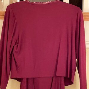 Phase- Eight Maroon twin set- camisole and tie jacket. Decorative accent on Cami straps and all edges. Soft and comfortable. Machine Wash Gentle. Made in Greece.