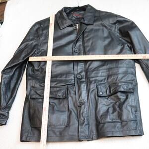 Phase Two Black Leather Jacket Men’s Size L Button Front Pockets