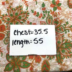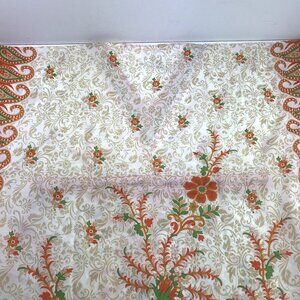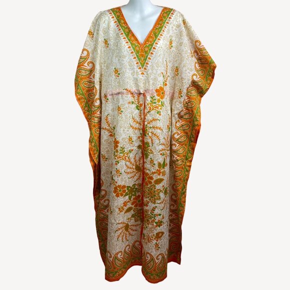 Phases Womens Caftan V-Neck Dress Orange Green Floral Drawstring Waist One Size
