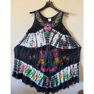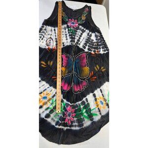 Phases Womens One Size S M L Pullover Butterfly Tie Dye Tunic Dress Boho Hippie Butterflies