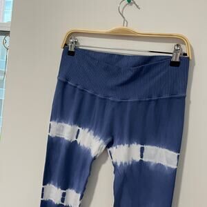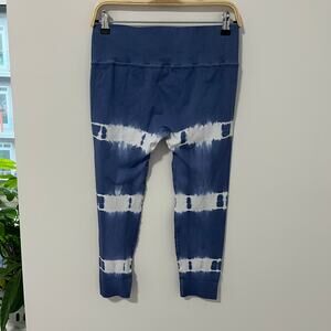 Phat Buddha Blue & White Tie Dye Seamless Crop Leggings Size M/L. Excellent condition, like new. High rise high waisted. Moisture wicking technical workout material. Capri length cropped length.