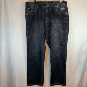 Phat Farm Jeans Men 42x32 Black Vintage Embroidered Classic Hip Hop Skater Biker