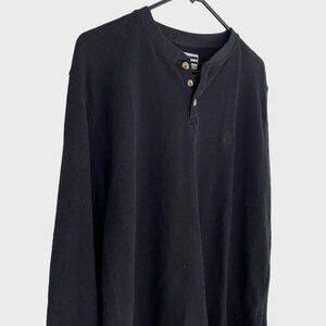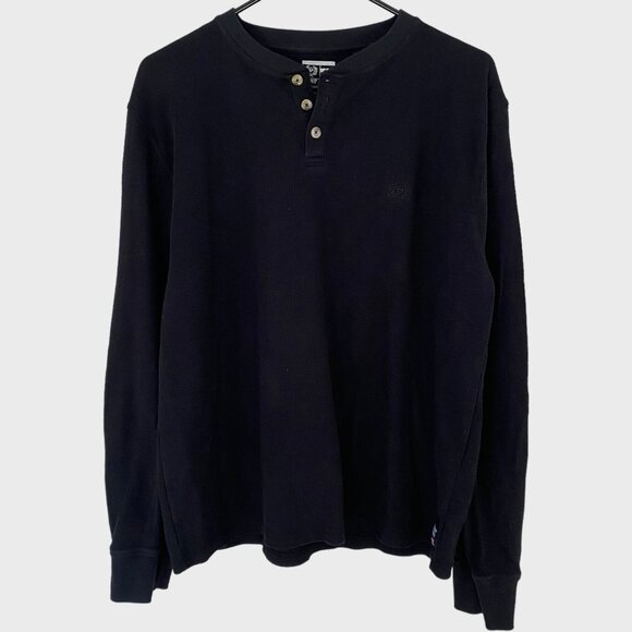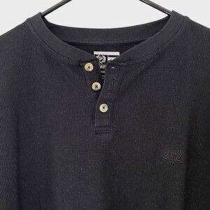 Phat Farm Long-Sleeve Henley Shirt Men's Size XL Black Waffle Knit Thermal