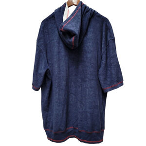This is a vintage Phat Farm men's hoodie in size 2XL. It features a solid blue color, short sleeves, a full zip closure, and a hood. Made of cotton, it includes logo accents and has pockets. The hoodie is machine washable and suitable for winter, fall, and spring seasons. Perfect for walking, it offers a regular fit and is in excellent condition.