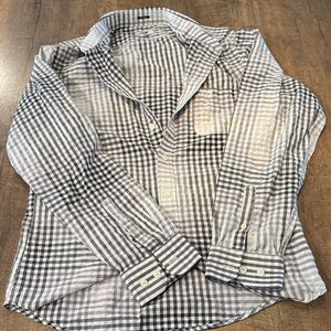Casual button-down shirt with a plaid pattern. Features a chest pocket and buttoned cuffs. Ideal for everyday wear.