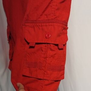 Red cargo shorts by Phat Farm. Has multiple pockets.