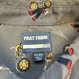 Phat Farm Shirt Mens XXL Grey Farm Tractor Bull Y2K Hip Hop Rap All Over Print