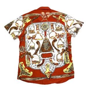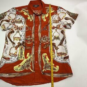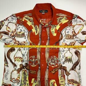 Phat Farm Vintage Short Sleeve Button-up 90s Y2K All Over Print VTG Sz Large Red yellow white brown