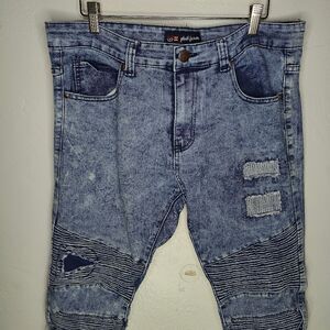Phat farm y2k vintage vtg distressed details ribbed light wash dark Wash splash wash stretchy denim jeans western streetwear patched patchy skinny ankle mens fashion 90s
