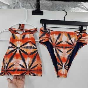 phaxtie dye swim bikini. size medium. good condition. clear tote