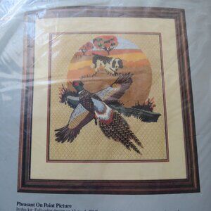 Pheasant on Point Picture Columbia Minerva Needlepoint Vintage kit #2114, 1984
