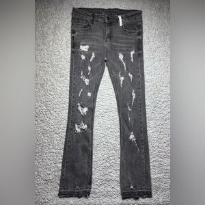 Pheelings Jeans Mens 32 Seize the Day Flare Stack Denim Distressed Raw Hem Fray