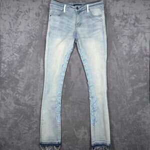 Pheelings Men’s 34 Light Wash Embroidered Denim Jeans Raw Hem