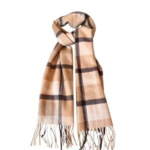 Phenix Cashmere Beige & Brown Plaid Scarf