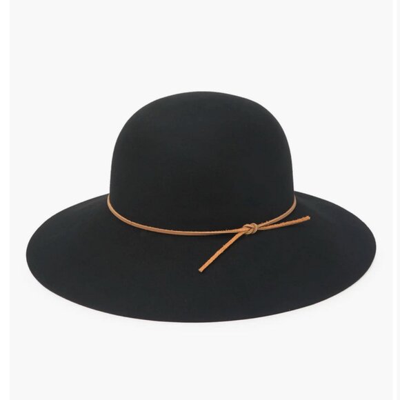 A wool floppy hat features a simple leather band for a timeless look in any ensemble.