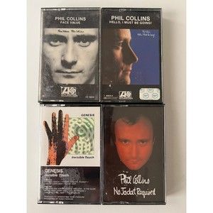 Lot of 4 Phil Collins / Genesis Cassette tapes. Genesis' "Invisible Touch", Phil Collins' "Face Value" "Hello I Must Be Going" and "No Jacket Required" all is play tested working condition