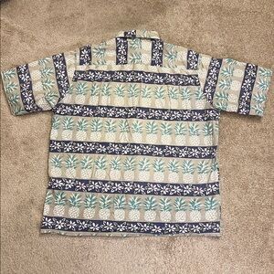 Add a touch of the tropics to your wardrobe with this stylish button down shirt. It's perfect for casual outings. A Hawaiian tradition. Pineapple tropical print.