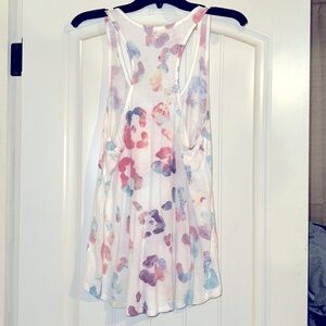 Multicolored leopard print razorback top. It runs a little big. Has a Hi/Low hem. Super soft.