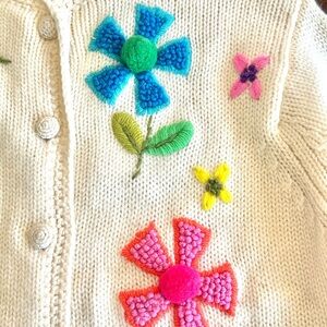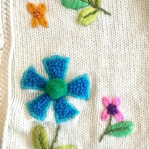 Phil Rose | 1960s Whimsical 3D Flower Knit Wool Sweater Cardigan