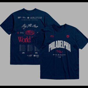 This shirt blends sports fandom with a concert–tour aesthetic — it looks like a “world tour” tee but celebrates the Philadelphia 76ers. It’s perfect for game day, casual wear, or adding to your sports merch collection.