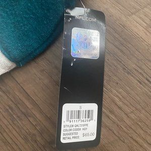 brand new, still has tags, never worn, NFL team apparel, gray, green, white