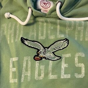 Cozy green hoodie featuring Philadelphia Eagles logo.