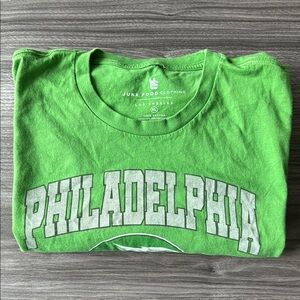 Vibrant green Philadelphia Eagles tee with bold graphic design. Features team logo and text.