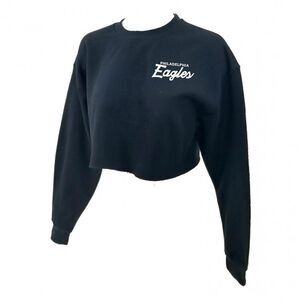 Philadelphia Eagles Double Script Retro Logo BLACK "Cropped" Crop Top Pullover Crewneck, Sweatshirt. Size: Small, Medium, Large and XL