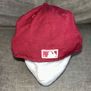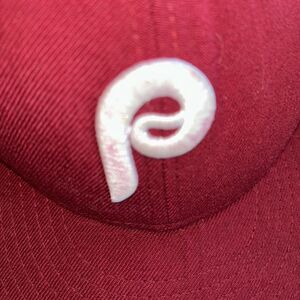 The Philadelphia Phillies MLB Authentic New Era 59FIFTY Fitted Cap in Burgundy is an officially licensed cap for fans of the Major League Baseball team. This unisex adult cap is designed in a size 7 1/8 and features the team's logo on the front in their signature burgundy color. The cap is suitable for the regular season and is a must-have accessory for any avid baseball fan looking to show their support for the Philadelphia Phillies.