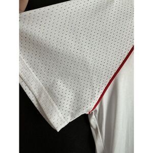 The white shirt is adorned with the iconic Phillies logo and is available in size Medium . Whether you're cheering on your favorite team or simply looking for a stylish addition to your activewear collection, this shirt is a must-have. Order now and add some Phillies spirit to your wardrobe!